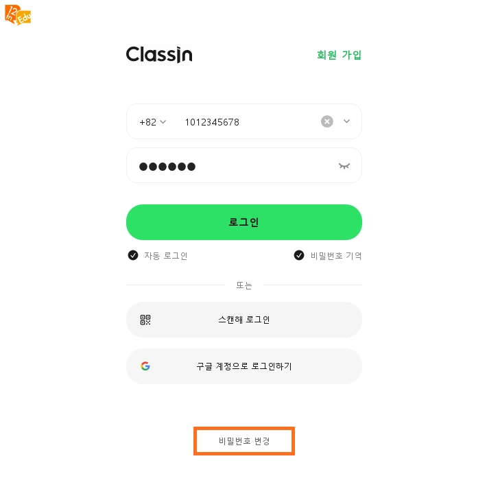 2. 로그인 창 하단의 [비밀번호 변경]을 클릭해 주세요.